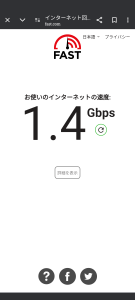 交換前のルーターの置いているリビングで計測すると、1.4Gbps出てます!!