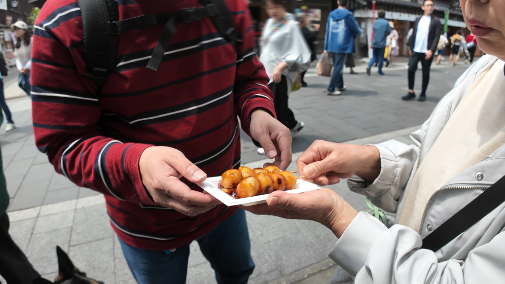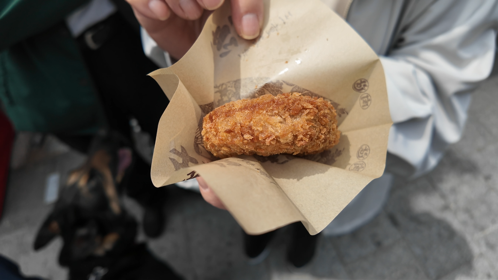 お肉屋さんの松阪牛がたっぷり入ったコロッケや、焼きたてのみたらし団子、