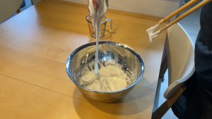 そこにお湯を少しずつ入れながら、これまた混ぜ~る!