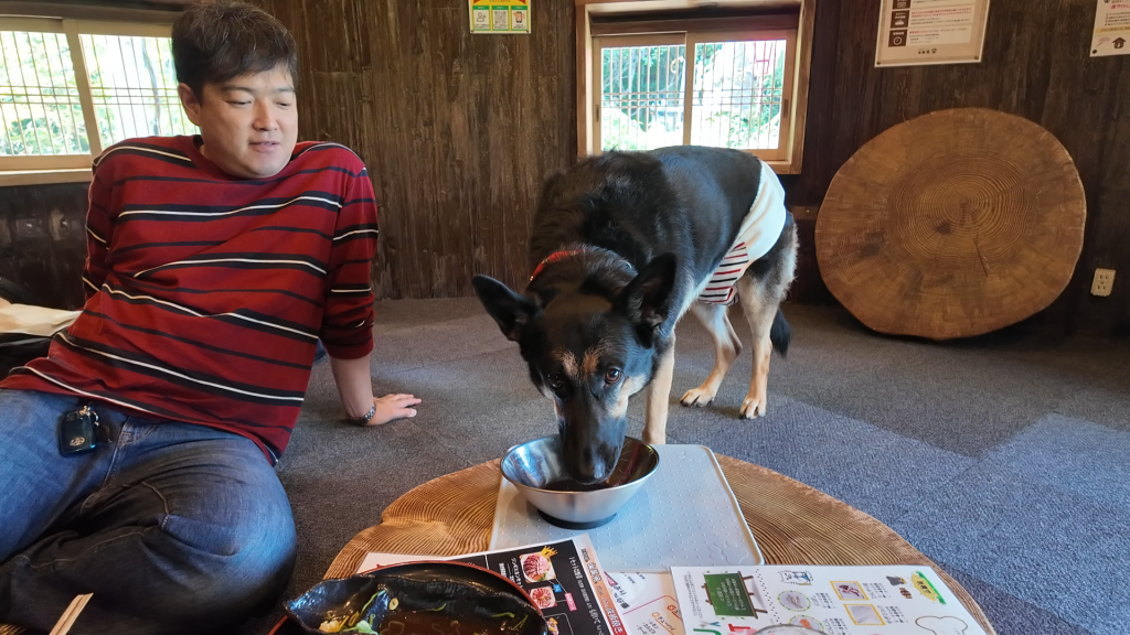 「たるの店 山麓苑」さんに焼肉食べにきたら、おいしくて愛犬が自宅並みにくつろいじゃいましたw