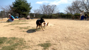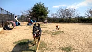 アジリティ、とまでは全然いきませんが、こういう遊具があるとドッグランの楽しみが増えますね!
