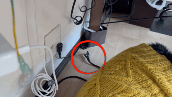 机の下で寝ていた維桜さんが、寝返りを打った際にプラグを巻き込み、