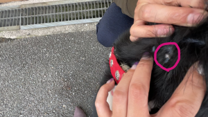 獣医の先生に調べてもらったところ、良性のニキビのようなものでした。
