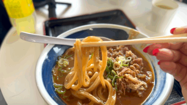 お昼ごはんには、カレーうどんをいただいたんですが・・・麺にご注目ください👇