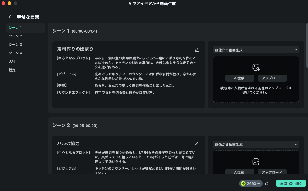こんなふうに、AIが動画のスクリプトを作成してくれます👆