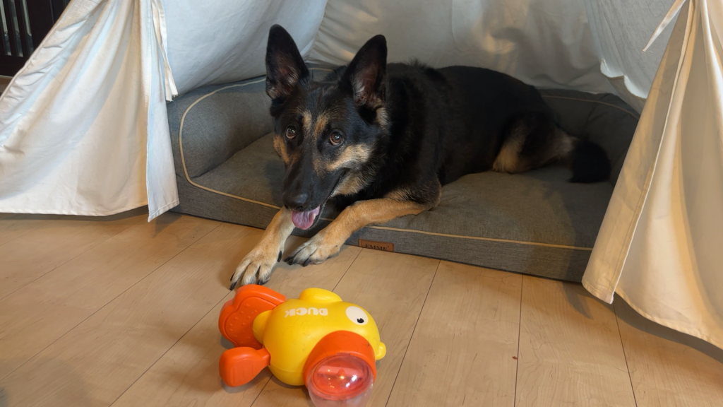 皆様もぜひ、愛犬とアヒル型のフィーダートイで遊んでみてください。