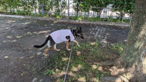 この時期は基本的に日陰に入りたがります😓