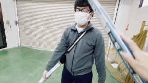 動画の最後には、蛍光灯が入っていたスリーブで遊ぶアラフォーのオッサンと、それに付き合う維桜さんの様子が・・・。
