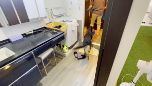 ・・・と思ったら、今度は掃除機をかけ始めました。