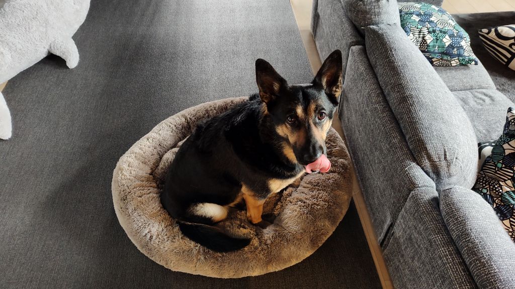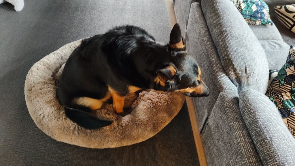 おやつ後は、「ごっさん!!」とばかりに満足そうにベッドでまったり。