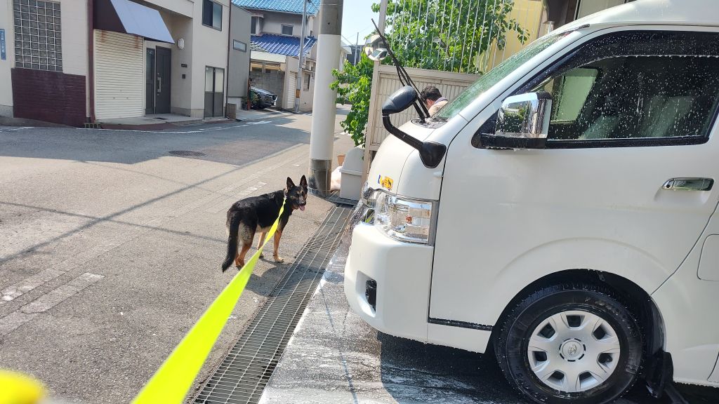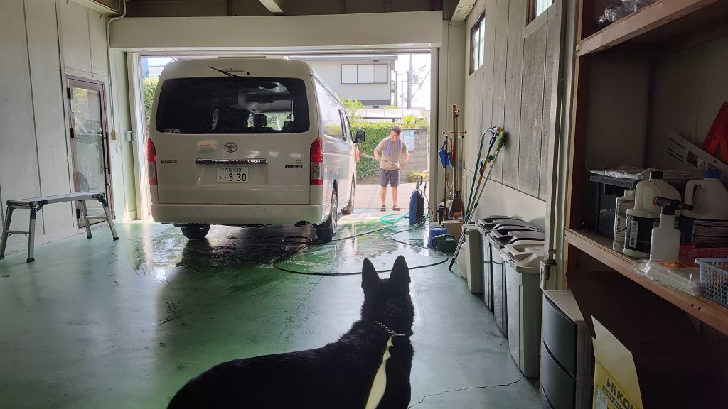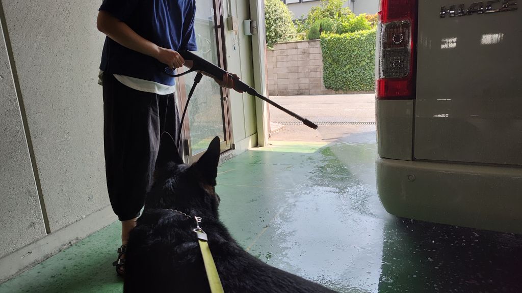 でも、家にひとりで待たせてママ様と1階で洗車し始めると、吠えるんですよ。