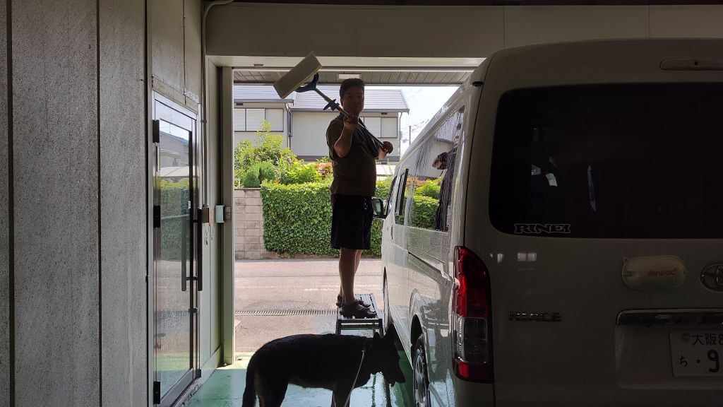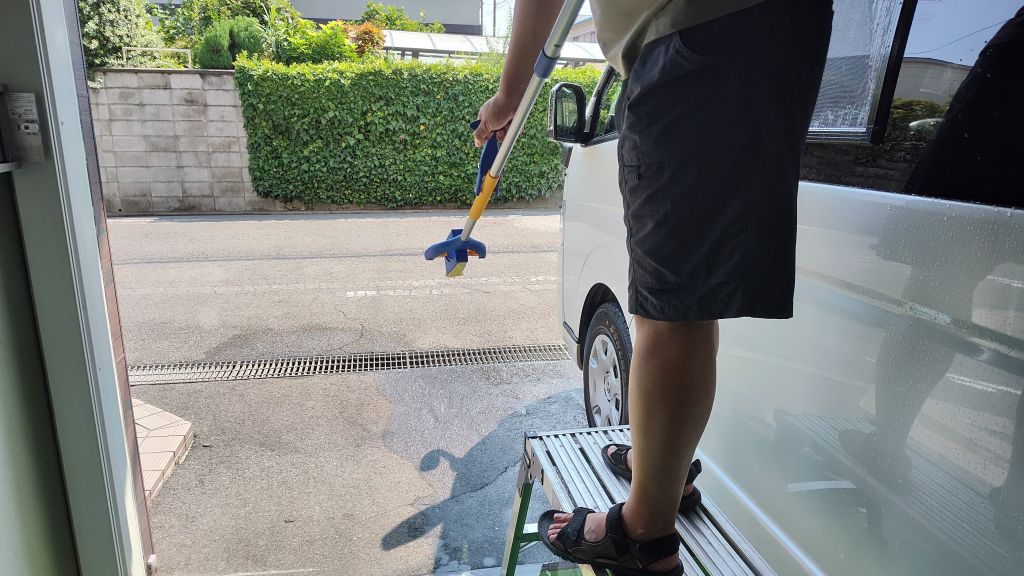 この車は天井にソーラーパネルが乗ってるので手洗いしてます✋