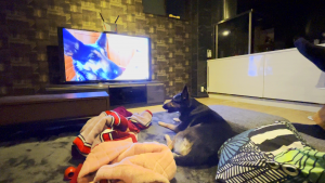 夜、リビングのTVで維桜さんがお好み焼き屋さんへ行った動画を見ていたところ・・・