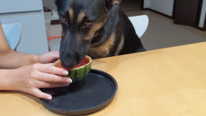 今日は、一昨日の記事「季節の果物を買いに行く犬」で購入してきましたスイカのお話です🍉
