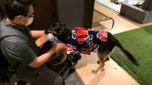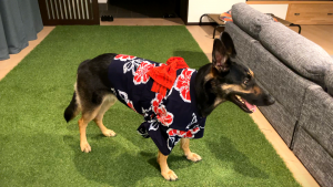 飼い主♀は、「せっかく作ってもらったので、これを着て夏祭りに行けたら最高なのになぁ~!」と維桜さんを見ながら思っておりました。