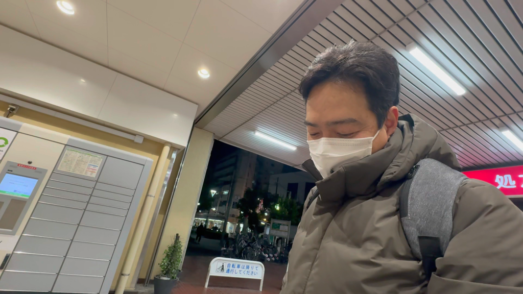 夜の散歩に、オヤジを駅まで迎えに来ました。