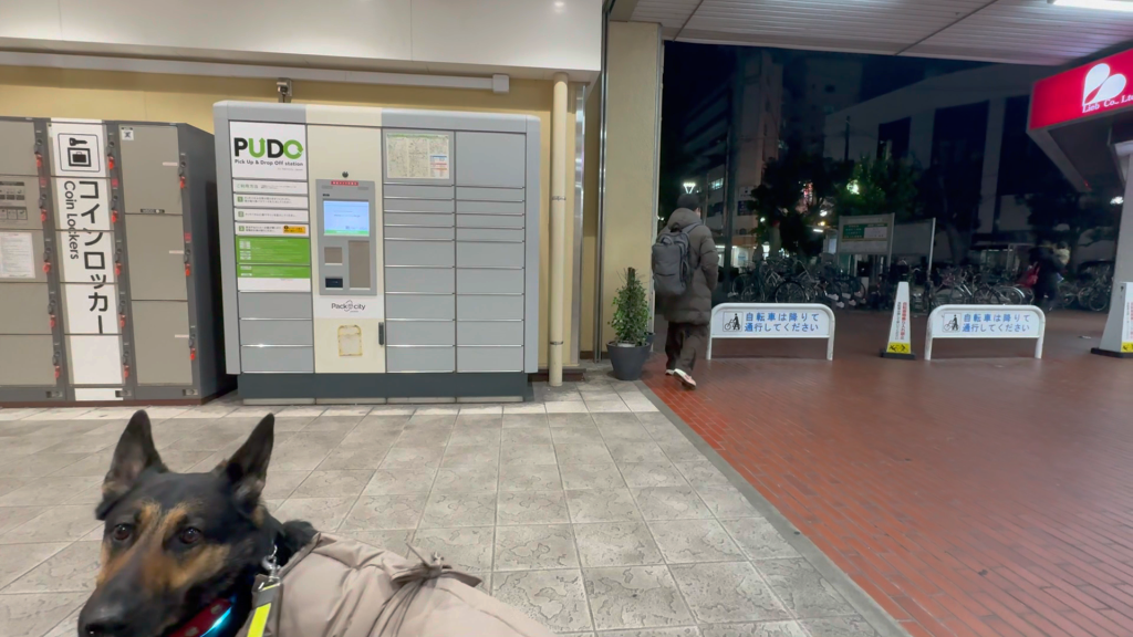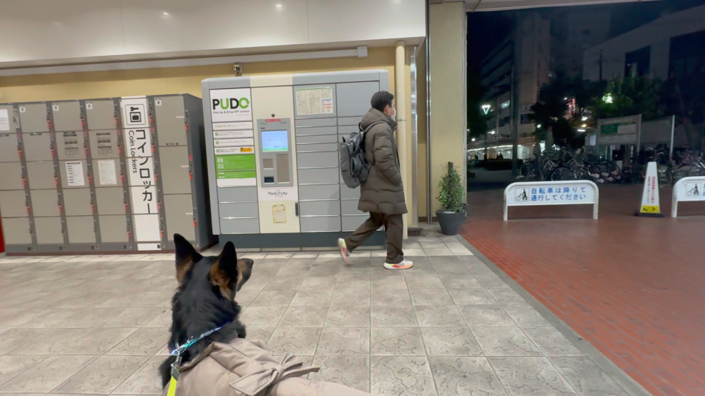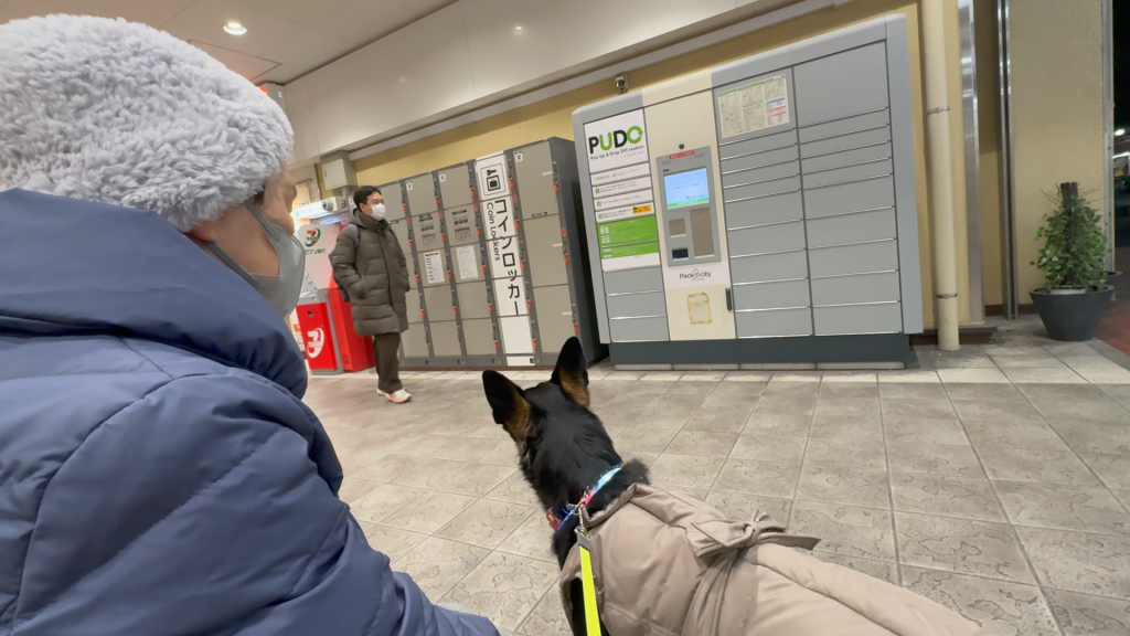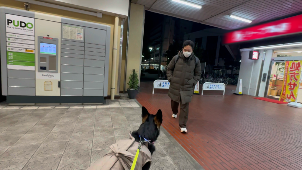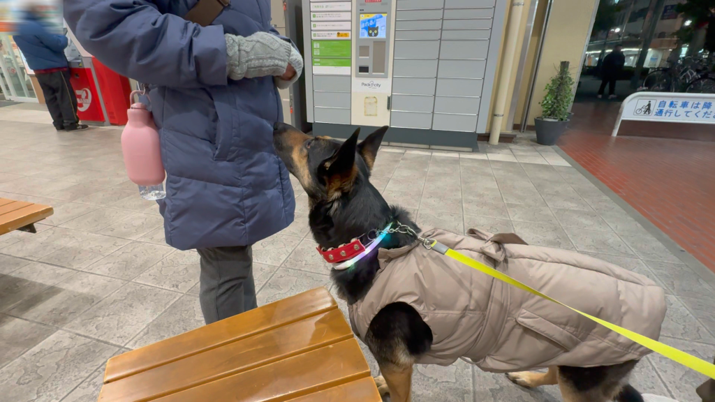 夜の散歩に、オヤジを駅まで迎えに来ました。