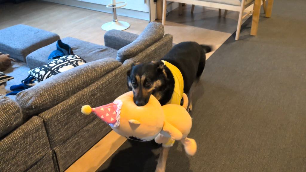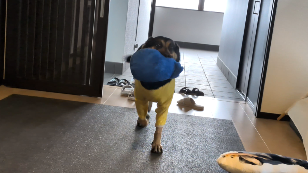 くわえてくるぬいぐるみは、一応チョイスしてるんでしょうか?
