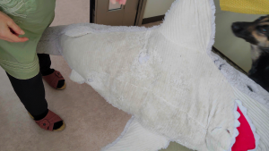維桜さんの願い虚しく、相棒のサメさんは犬用ランドリーの中で