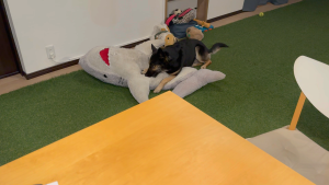先日、いつものように維桜さんが相棒のサメのぬいぐるみを噛みまくっていました。