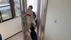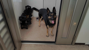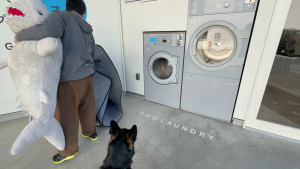 維桜さんの願い虚しく、相棒のサメさんは犬用ランドリーの中で