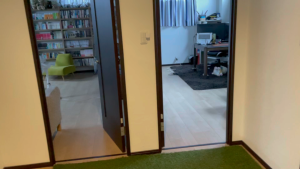 今はエアコンをつけているのでリビングの戸は閉まっています。