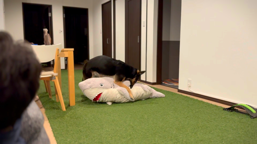 なぜか、名前を読んでお話を始めるとサメを噛みに行っちゃうんですよ・・・。