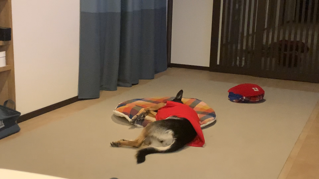 ホント、ママさんがおっしゃる通り、「寝る」×「噛む」の二段活用で気に入って(?)くれている(かつては)モフモフ(だった)マットでした🐶✨😄