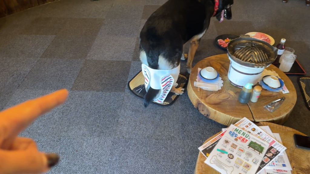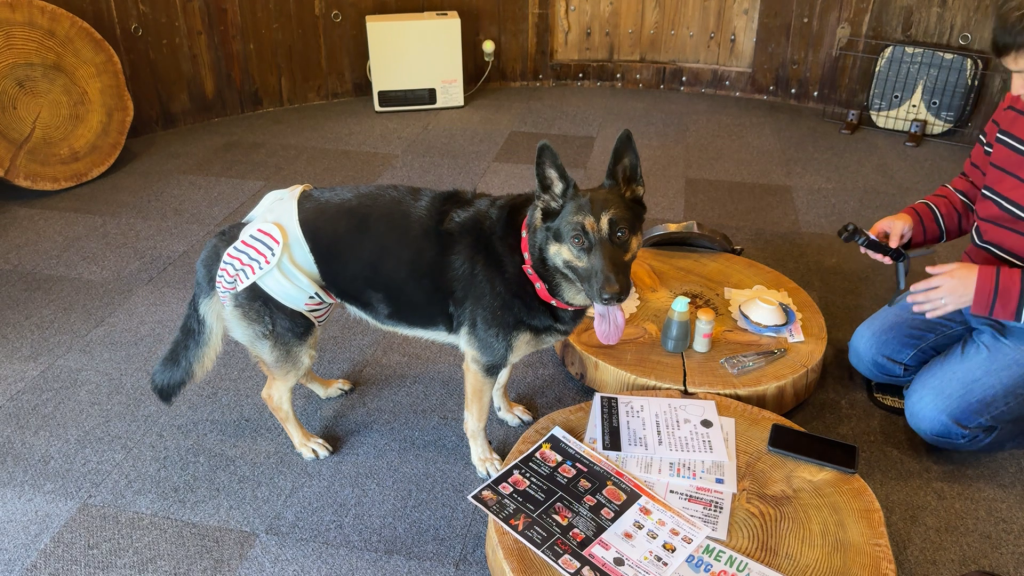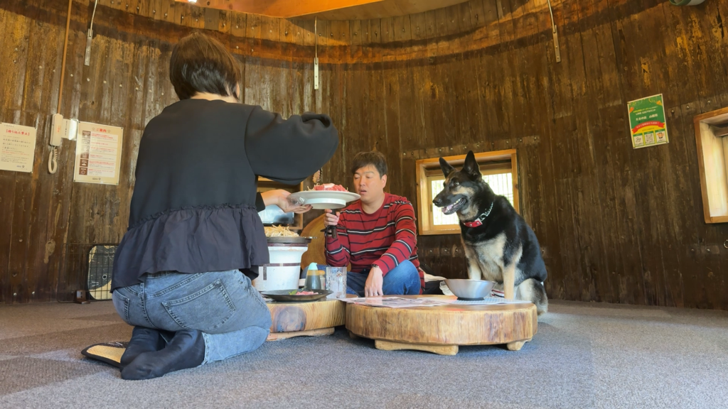 「たるの店 山麓苑」さんに焼肉食べにきたら、おいしくて愛犬が自宅並みにくつろいじゃいましたw