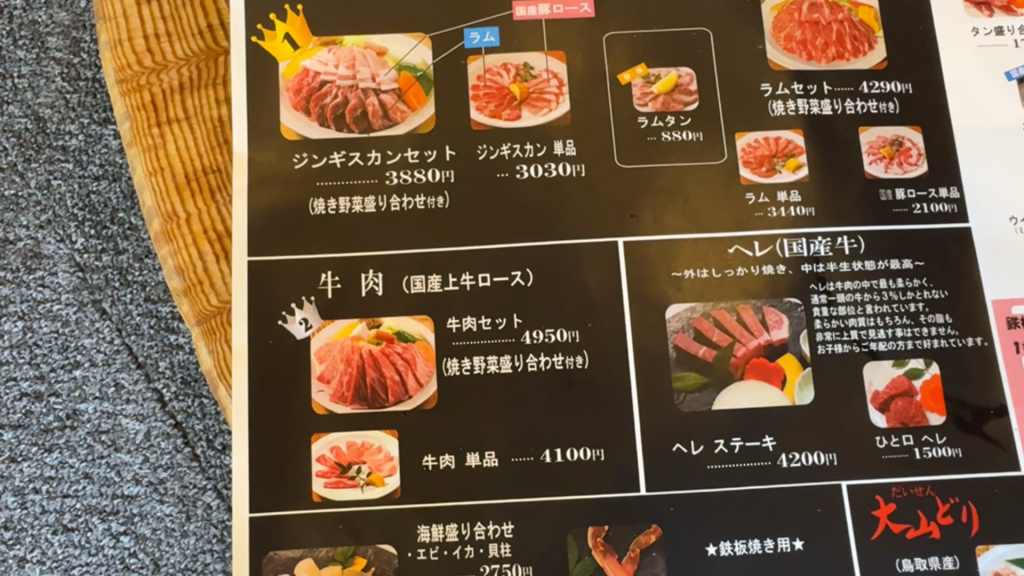 メニューは、名物のジンギスカンセットを始め、